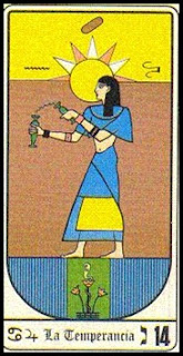Esta figura mirando hacia la izquierda muestra la acción de trasvasar los fluidos de un ánfora hacia la otra, manifestando el acto de la conservacion, manteniendo la plena circularon de la naturaleza, la moderación y la justa proporción.